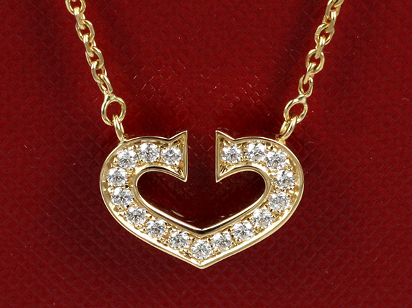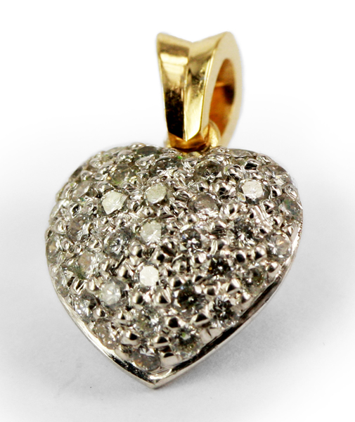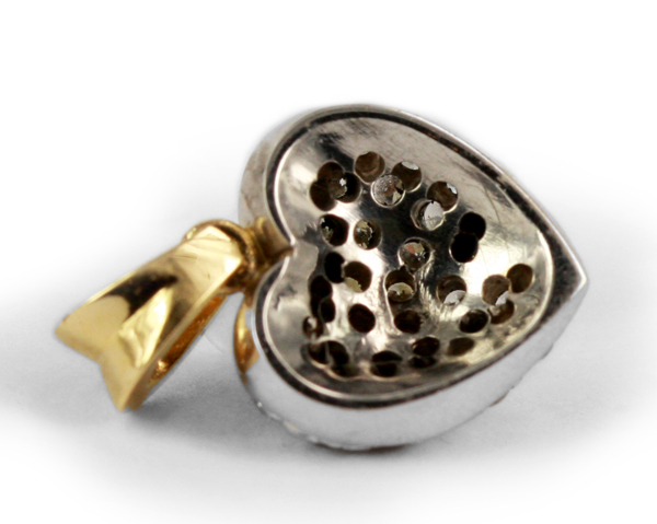 | Cartier PendantDescription: Cartier heart shaped pendant, set with 17x round brilliant cut diamonds D-G colour and VS clarity (aftermarket).