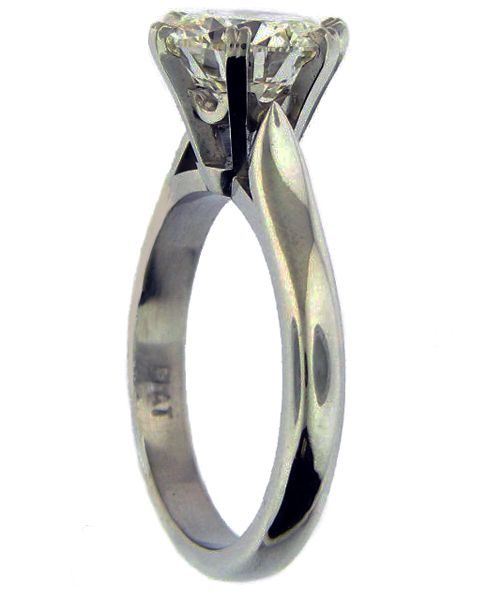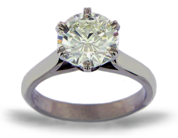| RingDescription: Diamond Solitaire comprising of a central 6 double claw setting, with tulip looped support, with up swept pointed shoulders. Metal: Platinum Gemstones: (Main) Round Brilliant Cut Diamond, 2.00ct, Colour J Total Weight: 6.00 grams Certificate: HRD Price: Price On Request |