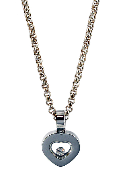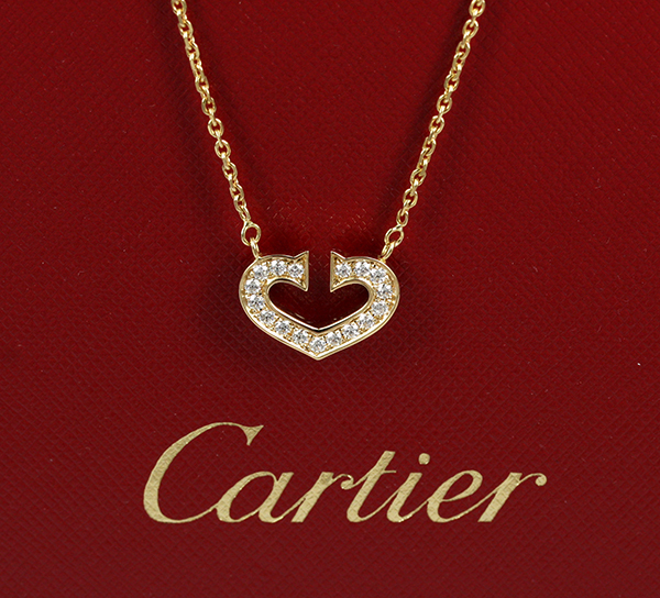 | Cartier PendantDescription: Cartier heart shaped pendant, set with 17x round brilliant cut diamonds D-G colour and VS clarity (aftermarket).